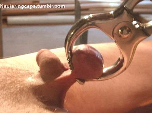 For extreme FemDom: castration ring applicators are used to place a tight rubber elastrator ring around the base of the human scrotum.This cuts the blood supply to the mans scrotum and testicles, which will totally decay and slough off within a few weeks. More...