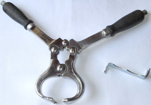 It is similar to the elastrator pliers, but bigger. To be used on bulls and big animals.